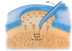 Estimulação direta na cartilagem – sob a cartilagem danificada, o cirurgião perfura pequenos orifícios (microfraturas, perfuração ou abrasão), buscando expor os vasos sanguíneos que ficam dentro do osso logo abaixo. Isso faz com que um coágulo de sangue se forme dentro da cartilagem e isso desencadeia a produção de um tecido semelhante a cartilagem. Infelizmente, a nova cartilagem que cresce é menos flexível e menos eficiente do que o tipo de cartilagem original.