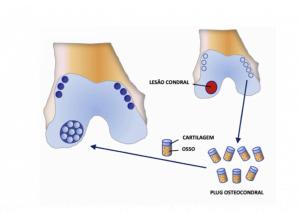Com um enxerto vindo de outra área do joelho que não será prejudicada, é possível colocar para preencher o local da lesão condral inicial. A técnica é usada para lesões de 1 a 4cm². É necessária uma boa geometria entre a área do procedimento para receber o enxerto e a área doadora que chegará.