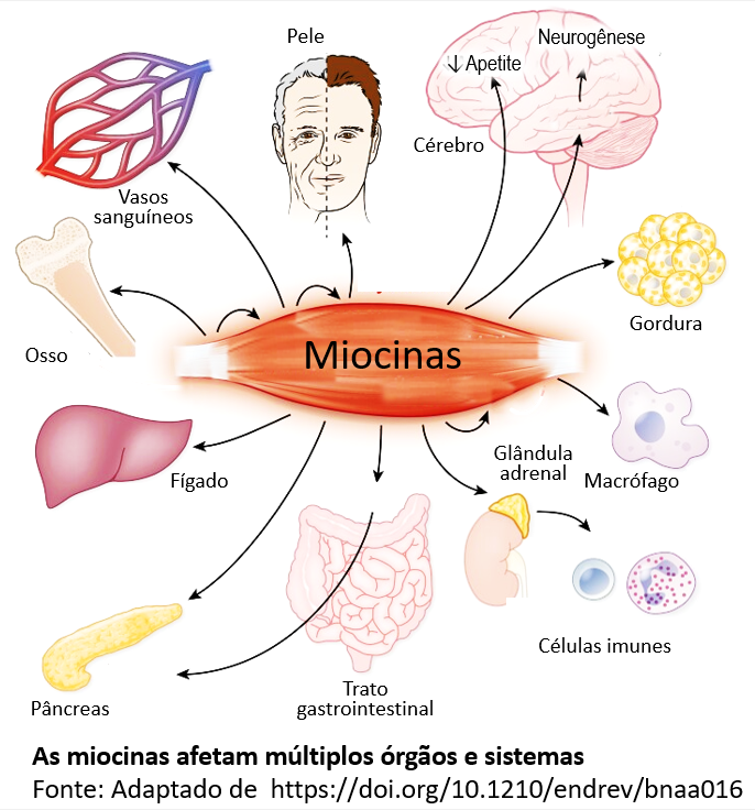 Além disso, o músculo produz miocinas, proteínas com efeito sistêmico que atuam: