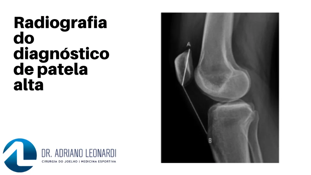 A radiografia é o exame mais acessível e fácil de ser realizado. Existe diversos índices para fazer essa mensuração da altura patelar. Por recomendação da literatura, usamos bastante o índice de Insall-Salvatti, que consiste em medir o maior comprimento da patela e divide esse valor pelo comprimento do tendão patelar. O normal na população é 1, quanto menor o índice, mais alta será a patela.